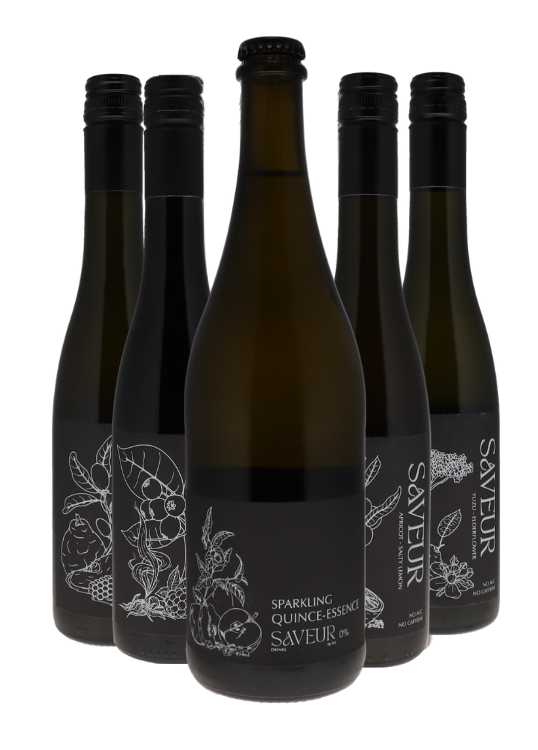 Mit diesem Set genießen Sie eine perfekte Auswahl unserer Sorten und können Ihr Menü auch zu Hause optimal begleiten:Wir empfehlen unsere Sparkling Quince-Essence zum Aperitif und zu den ersten Snacks des Menüs. Mit Yuzu–Elderflower begleiten Sie Ihre Vorspeise ideal – wir empfehlen Meeresfrüchte oder zarte Aromen.Mit Apricot–Salty Lemon haben Sie die perfekte Kombination zu Ihrem Zwischengang, etwa zu getrüffelter Pasta oder wenn ein gegrillter Fisch im Hauptgang serviert wird.Für den klasischen Hauptgang mit Röstaromen und intensiven Saucen empfehlen wir unseren Lapsang–Blackberry, dessen strukturierte Aromen die perfekte Kombination bilden. Den krönenden Abschluss genießen Sie mit Quince–Kumquat – die perfekte Balance aus Frucht und Zitruszesten zu Ihrem Dessert. Besonders Schokoladensoufflé oder Crème brûlée passen sehr schön.